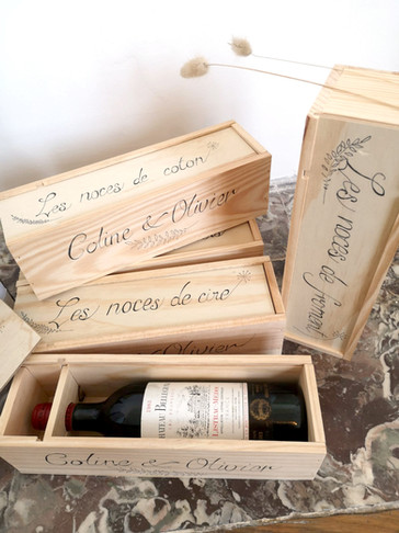 Il vous reste à personnaliser vos caisses ! L'idée, c'est que chaque caisse représente un an d'union, et les caisses sont à ouvrir sur 5 ans, pour marquer chaque anniversaire.